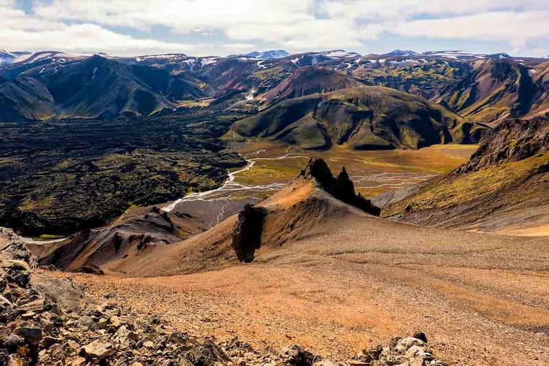 Fimmvörðuháls hiking trail is shorter as it takes approximately 1 day of the hike, but it's even more difficult. It stretches 30 kilometers across the southern Icelandic highlands from Skógar to Thorsmork and gives you breathtaking views on the hills nearby Eyjafjallajökull – infamous volcano erupted in and other craters created during the eruption in 2010 that stopped air traffic over Iceland. But even if you have only 1 day to spend in Porsmork you can choose a shorter trail that takes from 2 to 5 hours with as spectacular views.