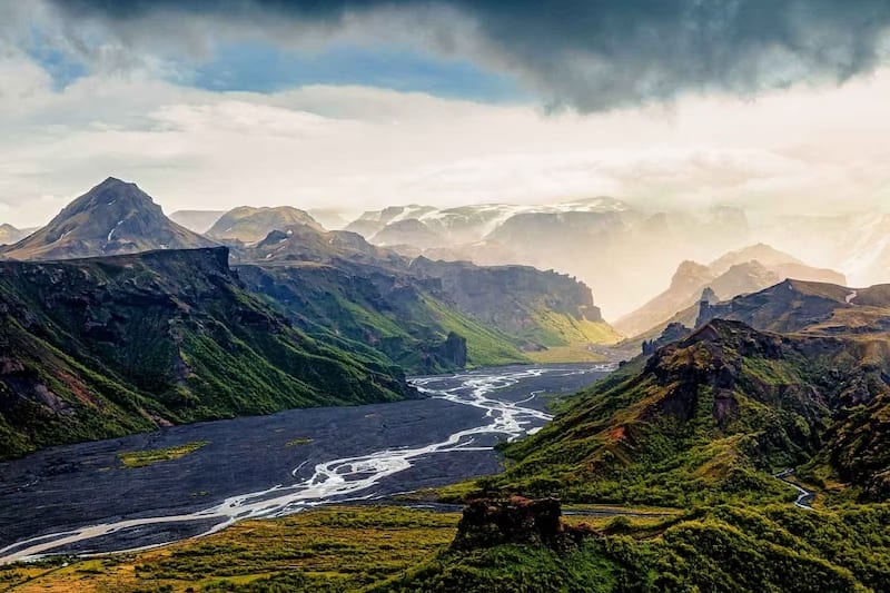 One of the most popular hiking destinations in Southern Icelandic Highlands is Thorsmork named after the Norse god Thor. The name Thorsmork refers to the valley lies between three glaciers covering the volcanoes Eyjafjallajökull, Mýrdalsjökull, and Tindfjallajökull. But also to a mountain range between three rivers Krossá, Þröngá, and Markarfljót.