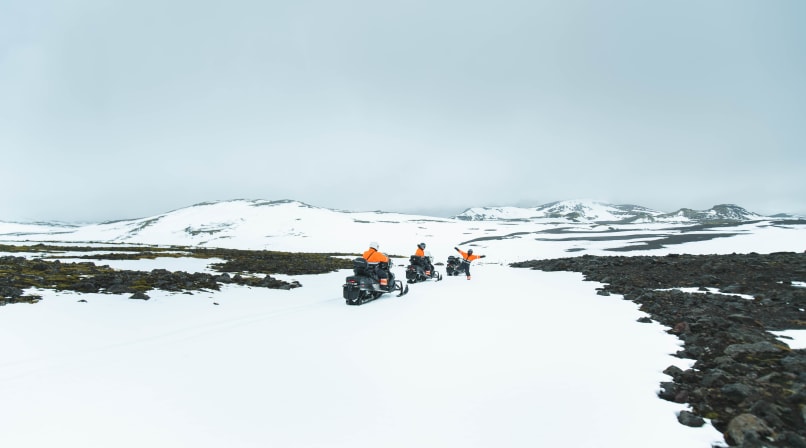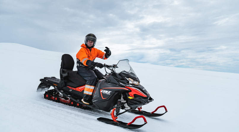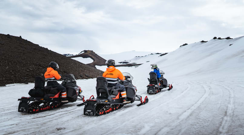Please note: All drivers must be 17 years of age or older and have a full, valid driver's license. According to Icelandic law, a learner´s permit, tractor, or motorcycle license is not sufficient. Single riders and groups with odd numbers must book a single-ride snowmobile.