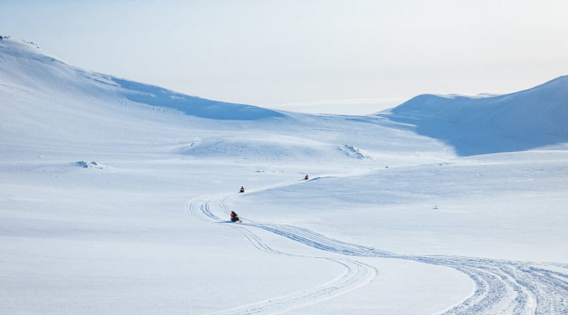 Once there, we’ll climb onto snowmobiles for a heart-pumping experience of Iceland at its absolute best. As soon as we get onto the glacier, prepare to be struck by its size: a pristine expanse of snow dotted with rock formations and majestic ice sculptures.