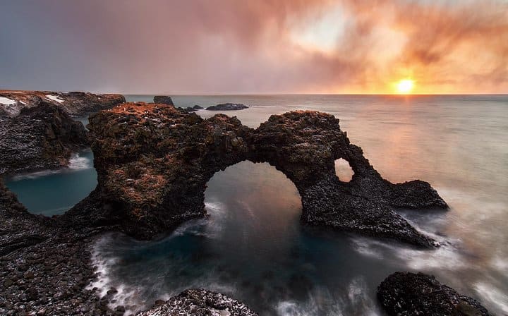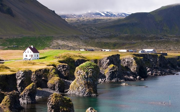 Our luxury tour continues to Arnarstapi, a small once-thriving fishing village stunningly located at the foot of Snæfellsjökull, a glacier-topped volcano known for being featured in Jules Verne's Journey to the Center of the Earth. The village of Arnarstapi is famous for its cliffs and lava formations that are home to a variety of bird species in the summer months. An easy path extends down the shoreline from Arnarstapi's natural harbor, providing wonderful photo opportunities of the cliff and the surrounding scenery.