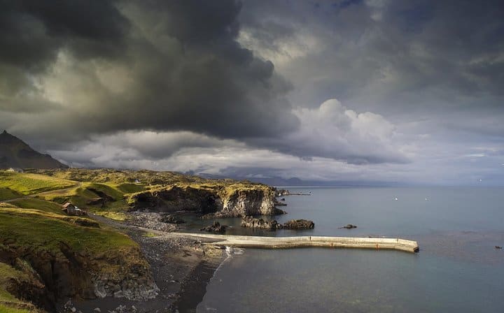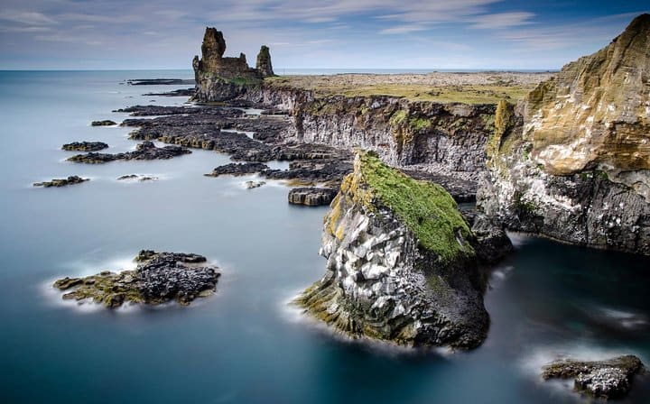 We make a stop at Lóndrangar to observe two spectacular lava formations said to be trolls transformed into rock while fishing. From the vantage point, you can also see the picturesque Malariff lighthouse, one of many on the peninsula, in its breathtaking setting surrounded by the massive waves of the Atlantic.