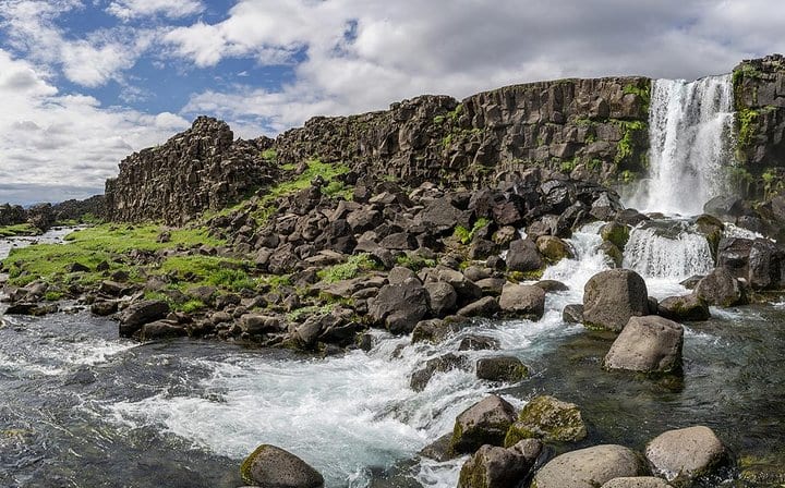 We stop in Þingvellir (or Thingvellir) National Park to view the split formed by the European and North American tectonic plates spreading apart. The park was also used as a filming site for various Game of Thrones sequences. You have enough time to visit some areas of the park and see the stunning Öxarárfoss waterfall. We also make a quick stop to see the Silfra snorkeling area.