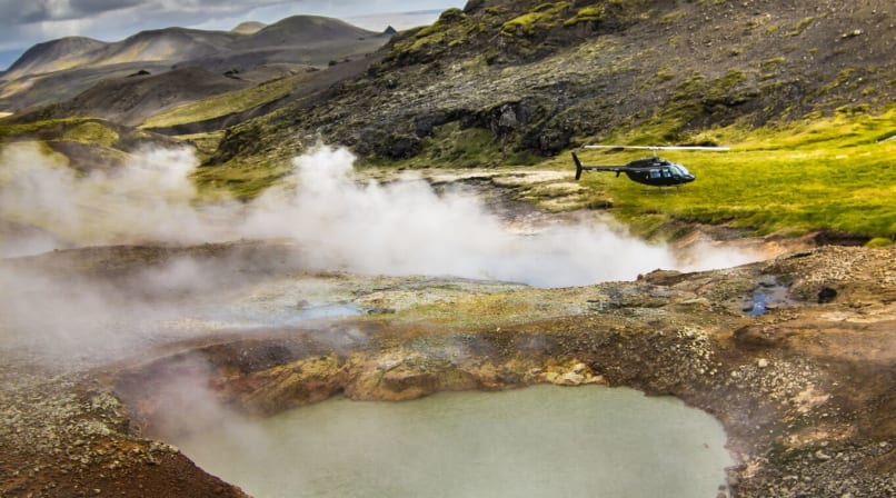 As the helicopter lifts off, you'll bid farewell to the familiar sights of Reykjavik, and a world of natural wonders will open up before you. Admire the vibrant mountain ranges and the steaming hot springs nestled amidst them. From high above, you'll witness the beauty and energy that emanate from the earth's depths.