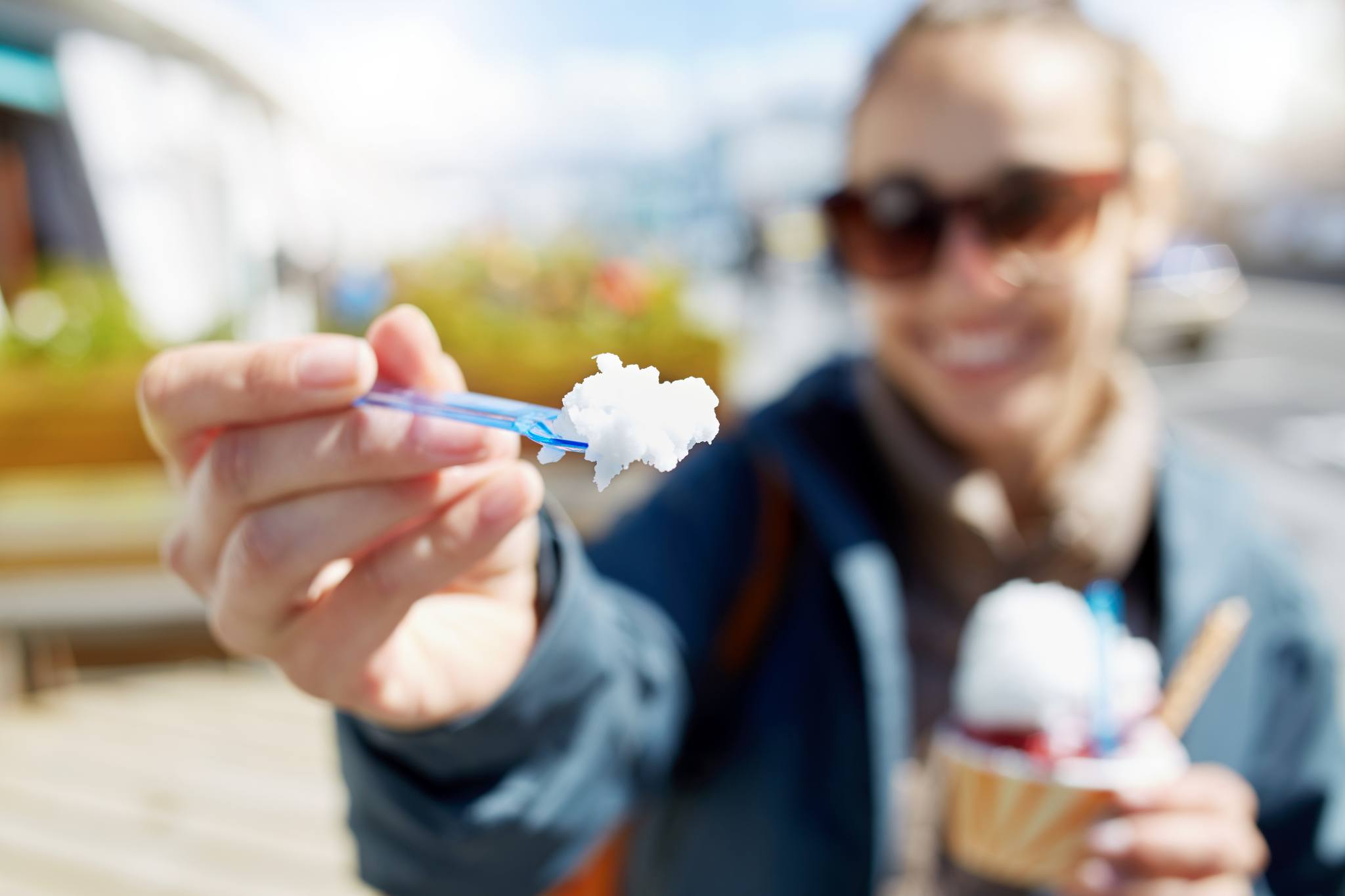 Icelanders love and eat ice cream in every kind of weather. Whether it is warm or below zero, you will see Icelanders eating ice cream. An unmissable stop in Reykjavik is the ice cream shop Valdis, in Grandi. For more traditional Icelandic ice cream, go to one of the many Isbuð shops: get a cone of soft vanilla ice cream, dip it in chocolate sauce, add your favorite candies and you are as close to an Icelander as you could be. Both in summer and winter, since the weather is always a little cold, it is popular for Icelanders to go for an “ice cream drive”: buy ice cream and eat it in the car while driving around.